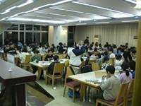夕食の後は体育館でのレクリエーション活動です。西原小の4倍くらいあるのではないか...