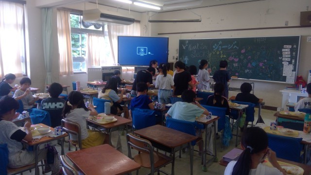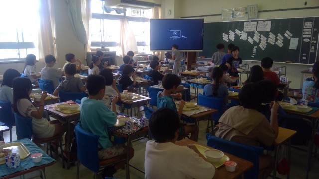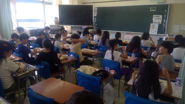 夏休み前の最後の給食風景です。夏休みを目前にし、休み中の予定や、楽しみにしていることなどを口々に話していました。