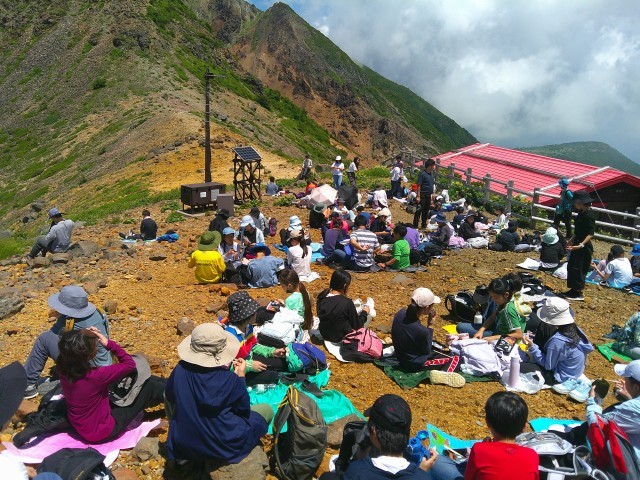 避難小屋の周りで昼食を食べました。いつも以上においしく感じました。