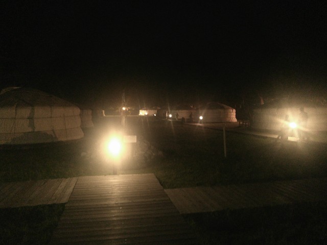 夜、宿舎の周りには暗闇が広がっています。予定していた星空観察は、雲が出ているため中止になりました。