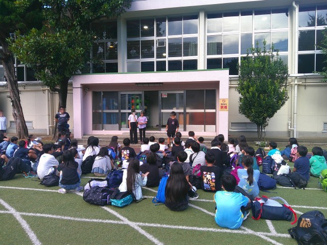 帰りの高速道路で渋滞に巻き込まれ、学校への到着が遅れましたが元気に学校に着き、帰校式を行いました。