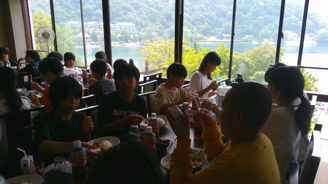 昼食は、中禅寺湖がきれいに見えるところでカレーライスを食べました。
