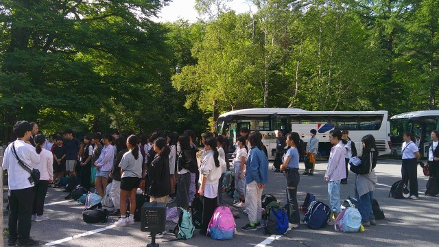閉園式をして感謝の気持ちを言葉で伝え、ホテルを出発しました。
