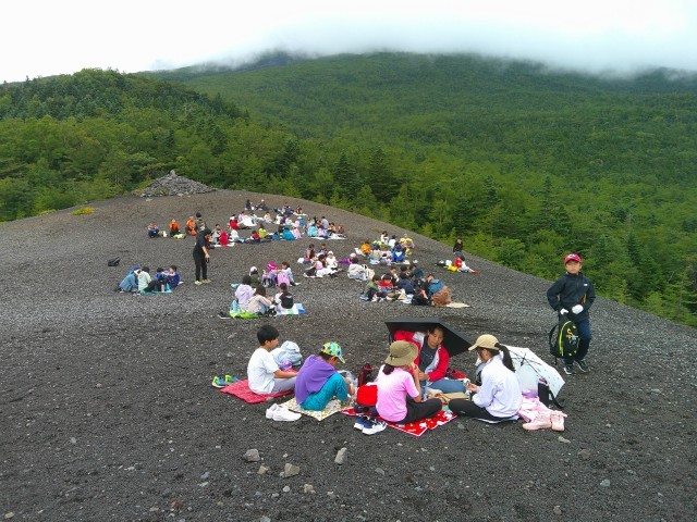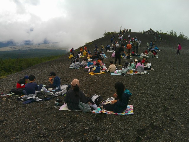 小富士山頂でお弁当を食べました。到着直後は河口湖の街がきれいに見えていましたが、どんどんと雲がかかってきて、白い世界になりました。