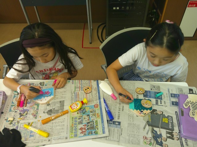 富士山をイメージした色を付けたり、動物をかたどったりと、富士山や自然から発想して描いていました。世界に一つだけの作品です。大事に家に持ち帰ります。