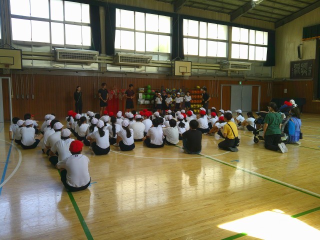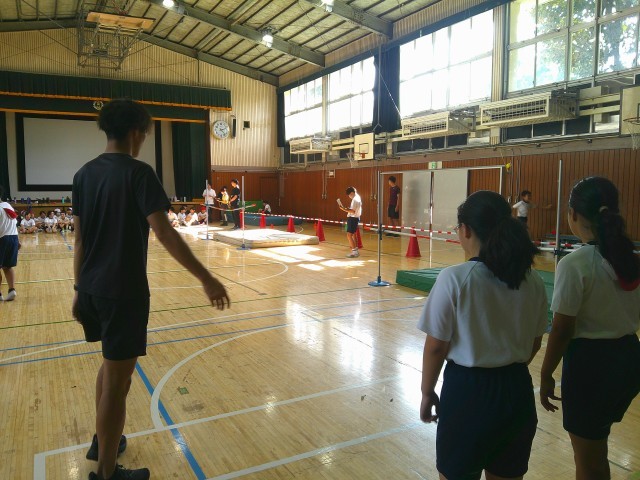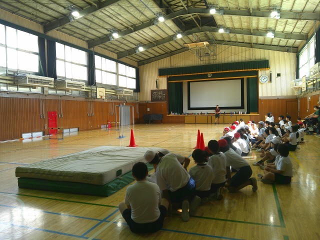 6年生は、走り高跳び、走り幅跳び、七種競技の日本記録保持者を講師に招いて、陸上の授業を行いました。