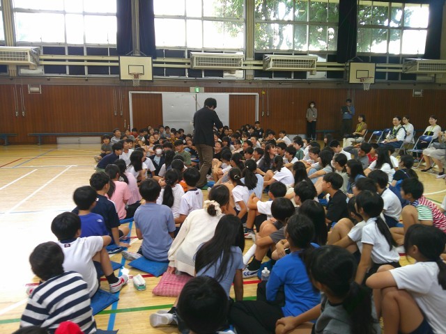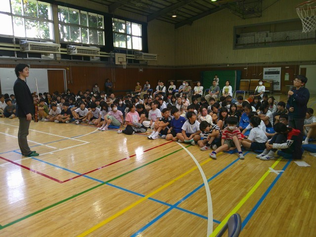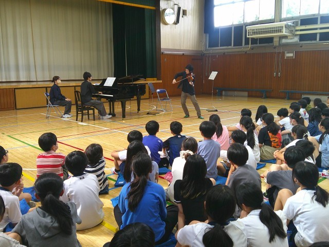 ドイツで生まれ、ニューヨークで育った大曲さんの自己紹介は英語で始まりました。そして、そのあとは日本語で、英語が話せることで世界が広がること、多くの人と交流をもつためのマインドなどを話してくださいました。子供たちもたくさん質問し、ヴァイオリンに興味をもったきっかけやプロになるまでの努力、音楽に対する情熱などを伺うことができました。