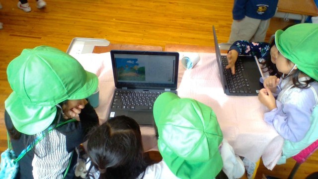 今日は、3組に保育園の子供たちが来てくれました。学校の中を案内したり、通学カバンを背負う体験コーナーをつくったり、絵本を一緒に読んだりと、様々な形で学校のことを伝え、交流を楽しんでいました。