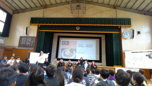 交流会では、留学生の皆さんが英語で自己紹介をしてくれました。出身地や好きな食べ物など、個性あふれる紹介に、子供たちは興味津々。質問タイムには、自己紹介の内容に関する質問だけでなく、相手のことをもっと知ろうとする質問もたくさん出していました。