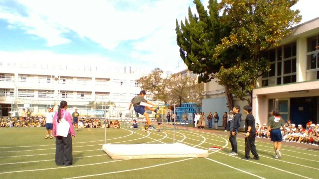 選手の招集やスタート合図、記録は、2校の先生たちで手分けして行いましたが、開会式や閉会式の進行、用具の準備などは児童の手で行いました。そして、どの児童も、真剣に自分の出場種目に臨んでいました。また、競技に取り組む仲間を間近で応援できたのもよかったと思います。