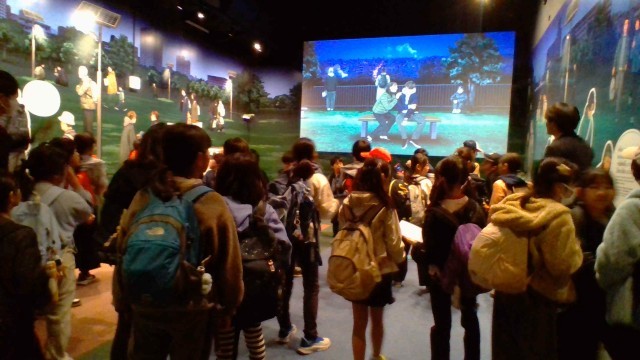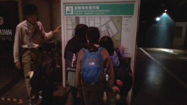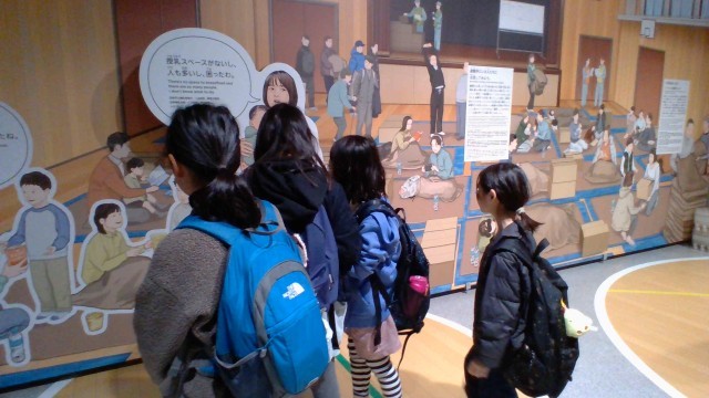 地震発生後72時間を生きのびるための行動の仕方や備えについてクイズに答えながら体験的に学んだり、展示物を見ながら学んだりしました。