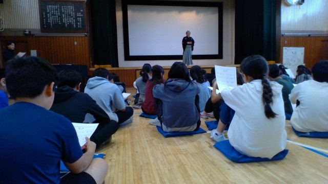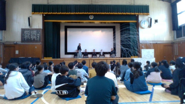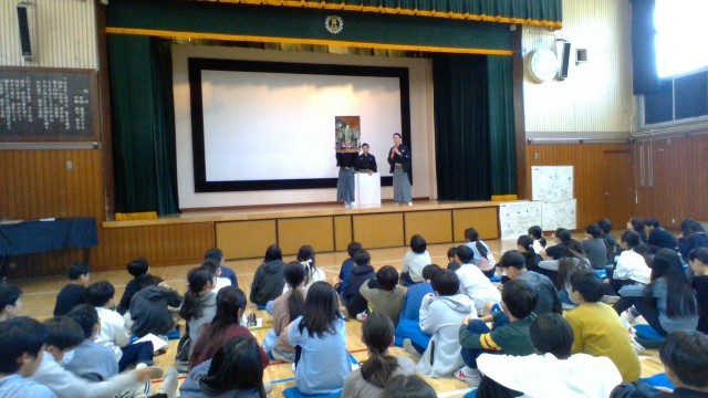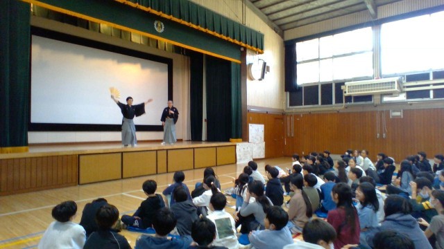 6年生の国語の教科書には、「古典芸能の世界」を扱う単元があります。室町時代から伝えられてきた文化に直に触れる、よい機会となりました。