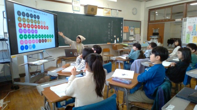 1組では、富ヶ谷の魅力を表すキャラクターを創ろうと考えています。この日は、グラフィックデザイナーをされている保護者の方がゲストティーチャーとしてご来校くださり、子供たち一人一人のデザイン画について、プロの目から価値付けたり助言したりしてくださいました。