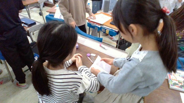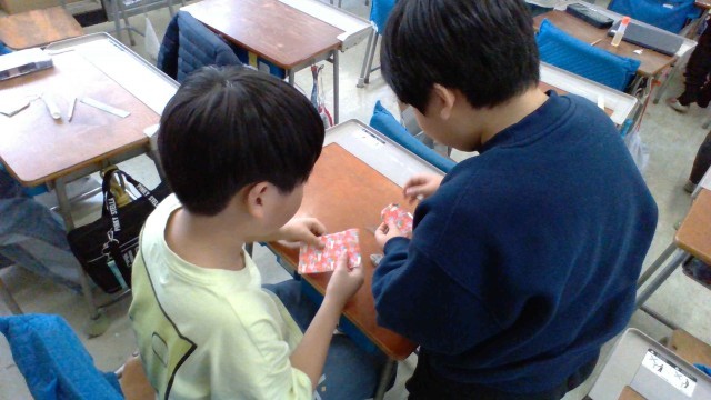 折り紙を折った中には、将来の夢や頑張りたいことなどを書いたカードを入れていました。自分の分を一つつくると、家族の分をつくっている人もいました。