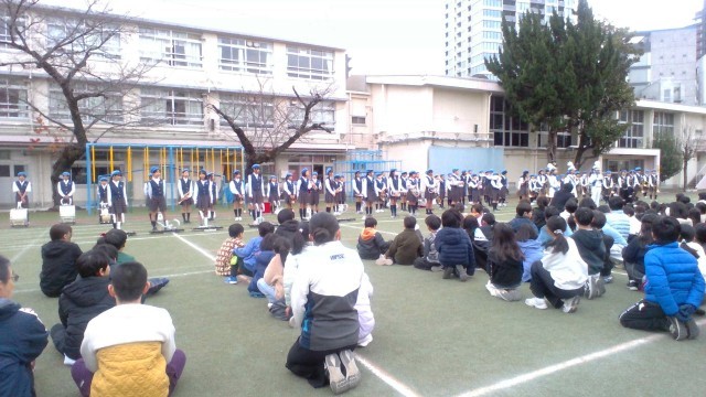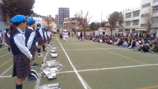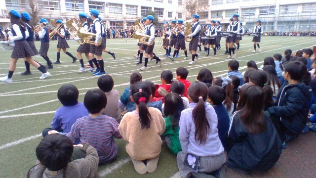 6年生は、くみんの広場パレードで演奏した曲にさらに磨きをかけ、また、冒頭に「ドラゴンクエスト ロトのテーマ」を加えて、ドリルをしながら演奏し、会場から大きな拍手をもらいました。