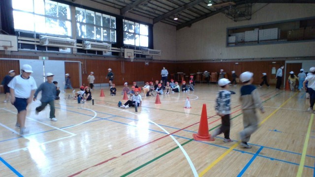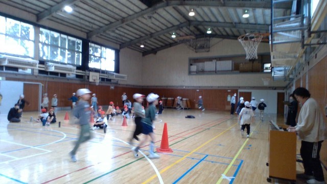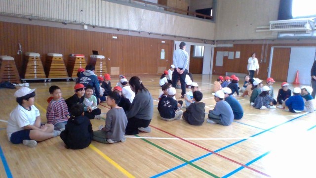 前半は、リトミックを一緒にやりました。動きの手本は、いずみ学級の子供たちが示しました。先生の弾くキーボードの音に合わせて、いろいろな動きをして楽しみました。