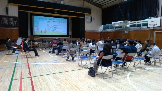前段は、春に行った体力テストの結果を踏まえて、子供たちの体力や運動能力の向上を目指して学校で取り組んできたことと、家庭でできる簡単な運動遊びの紹介をしました。また、定期健康診断の結果を受けて、特に歯の健康についてお話ししました。歯科校医の吉富先生もいらしてくださり、口を閉じたときの舌の位置や普段の姿勢と歯並びとの関係などについてお話しいただきました。