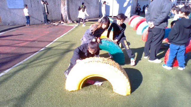 内容は、宝探しゲームです。校庭のあちらこちらに隠された平仮名の書かれたカードを探し、その文字を組み合わせて言葉をつくるというルールでした。