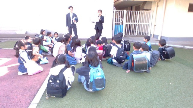 最後に、各学級に分かれ、担任の先生と挨拶を交わしました。