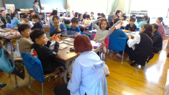 この日は、偶数学年の保護者会の日でした。保護者会に先立ち、「子供×大人の対話」を行いました。学級の子供たち、保護者の皆様、そして、担任等の教員が、一緒に活動したり対話したりすることを通して、互いに理解し合ったり、つながりを深めたりすることを目的として行いました。