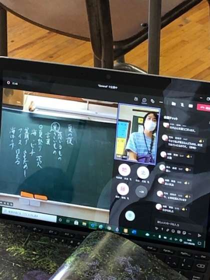 先生方はTeamsのチャット機能を使って、子供たちの意見を上手に全体へ共有していました。時折、自宅からパソコンを通した発言をクラス全体で聞く機会もあり、場所を感じさせずに授業を行うことができています。分散登校期間中ですので4年生以上はクラスの人数は少ないですが、授業はオンタイムで自宅の子供たちにも教えているため、先生方はとても疲れるそうです。先生方に感謝するとともに、より改善していける方法を見付けていきます。