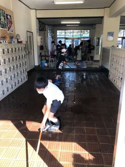 10月6日(水)は前期の終業式です。朝、5年生の清掃ボランティアの子供たちが昇降口をきれいに掃除をしてくれていました。ありがたいです。終業式はオンラインで実施しました。2名の代表児童が前期のがんばりと後期への抱負を上手に話していました。この半年の成長を感じます。保護者の皆様には、多くのご協力に感謝いたします。短い秋休みですが、感染症に気を付けていただき、ご家族でお過ごしください。