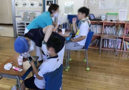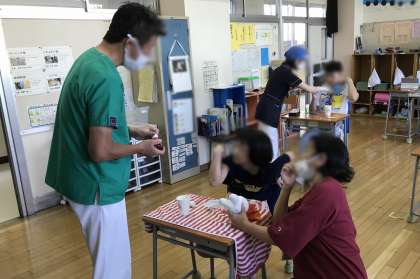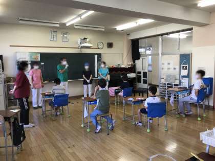 吉富先生から「朝起きたときの口の中が、一番菌が多い。」というお話があり、子供たちは起床後、朝食後の歯磨きの重要さを再確認していました。