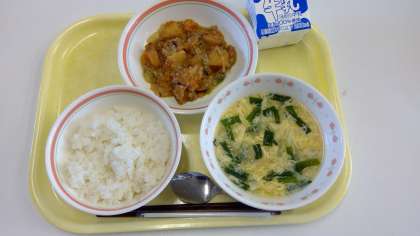 今日は、豆腐のかわりにじゃがいもが入った「麻婆じゃが」です。「麻婆豆腐」だと思っている児童が多数いました。