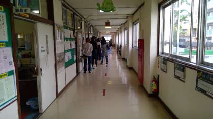 今日は、大型台風の接近を想定した引き渡し訓練を行いました。訓練には、たくさんの保護者の皆様がご参加くださいました。