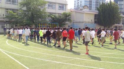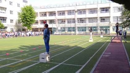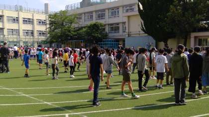 運動会を10日後にひかえ、今朝、体育朝会をしました、