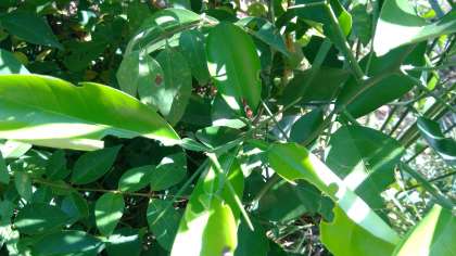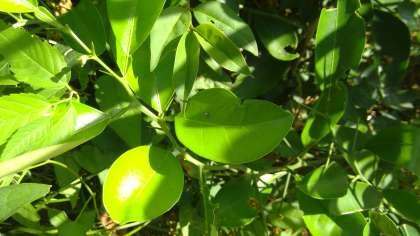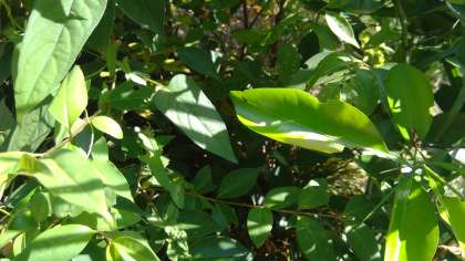 正門を入ったところにあるミカンの木にアゲハチョウの幼虫がいると、登校してきた人が見付けて教えてくれました。