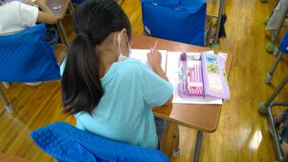 4月に入学してから一文字ずつ丁寧に平仮名の練習をしてきた1年生ですが、今は、文が書けるまでになりました。