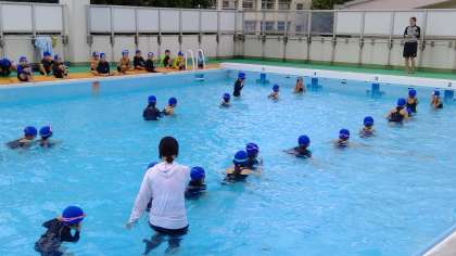 今年プールに入ることのできた回数は限られていましたが、水をかけたり、潜ったり、浮いたりして、水に親しむことができたようです。