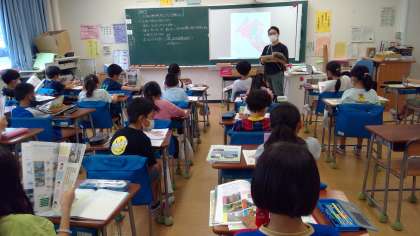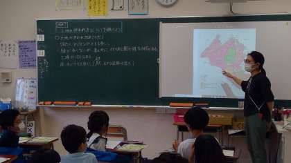 3年生は、渋谷区の様子について学習をしています。土地の使われ方について地図を見ながら考え、気付いたことをノートにまとめたり紹介し合ったりしました。