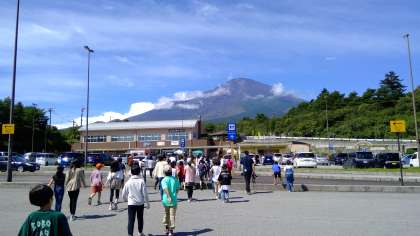 気持ちよく晴れ渡った空のもと、校庭で出発式を行い、御殿場に向けて出発しました。写真は、トイレ休憩をとった道の駅すばしりから見た富士山の様子です。