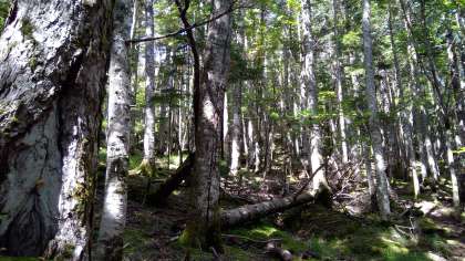 樹の皮がはがれているのは、冬に鹿が食べたあとだそうです(2枚目の写真)。