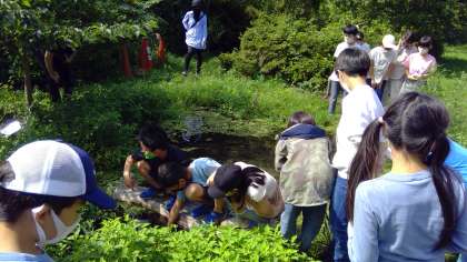 ビオトープでは、黒メダカやモツゴ、ドジョウなどを見せていただきました。
