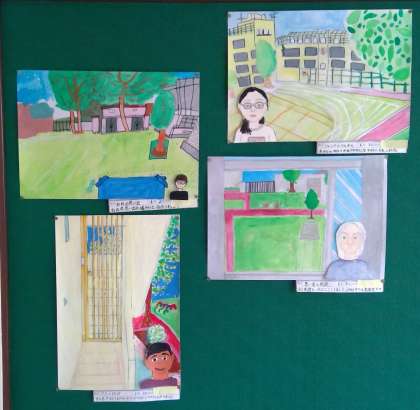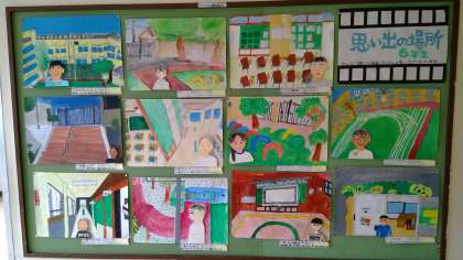 6年生は、図画工作の時間に、思い出の場所を絵に描きました。
