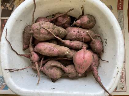 9月13日に、いずみ学級の畑に植えたさつまいもを収穫しました。