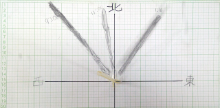 陽の出ている日に屋上に出て、太陽と日光でできるかげの関係について学習をしました。ストローのかげを方眼工作用紙に写し取り、時間が進むと、かげが西から東にうつっていく様子に気付きました。また、それは太陽が東から西にしずんでいく動きと関係していることを理解しました。