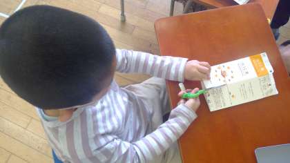 牛乳パックを使い、ハサミで切ってドアを作ったり、発砲スチロールで顔を作ったりしています。ドアが開くと顔が出てる仕掛けおもちゃになります。