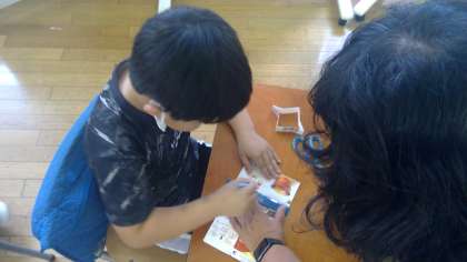それぞれオバケの顔を考えて思い思いに作品作りに取り掛かっています。