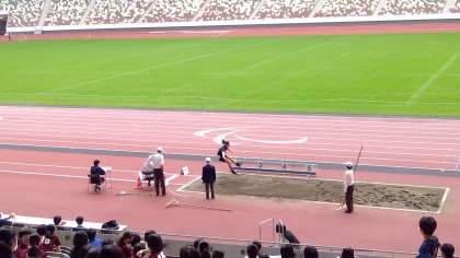 並行して、フィールドでは、走り幅跳び、走り高跳びも行われました。踏切を合わせるのに苦労した児童もいたようですが、ベスト記録が出せるように、頑張りました。