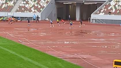 陸上記録会最後の種目は、100m×4人の400mリレーです。国立競技場からお借りしたバトンを使い、全員がセパレートコースで走ります。各校の代表児童の走りに、応援にも力が入りました。自分の学校かどうかにかかわらず、惜しみない拍手がおくられました。