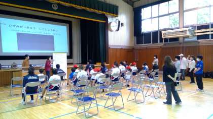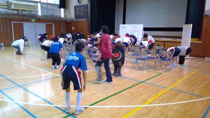 挨拶をした後、互いに自己紹介をしました。いずみ学級のみんなは、名前と好きな運動を紹介しました。