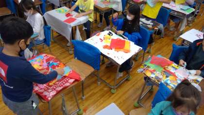 2年生は図工の学習で、おはな紙を使いました。