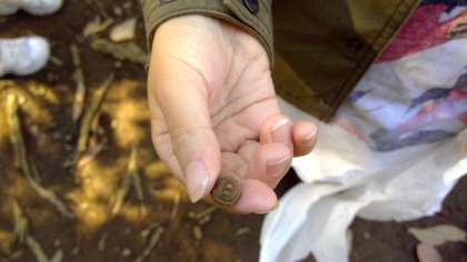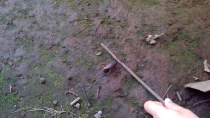 落ち葉の隙間からコオロギを見つけ、大興奮の子供たちでした。