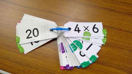 九九カードをめくりながら暗記する子もいれば、歌に合わせて暗唱する子もいます。これまで2・3・4・5の段まで学習しました。