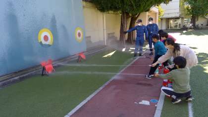 消防署の方が最後に、「一番大切なことは命を守ることです。無理に消火をしようとしないで、大人に知らせること、逃げることも大切。」と話していただきました。