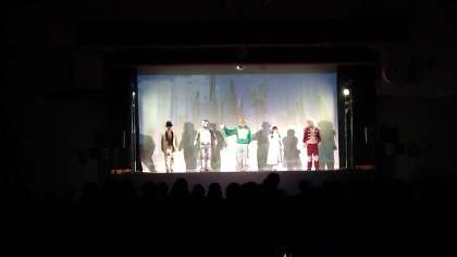 体育館が劇場になり、プロジェクションマッピングによる背景の中、「オズの魔法使い」のミュージカルが繰り広げられました。